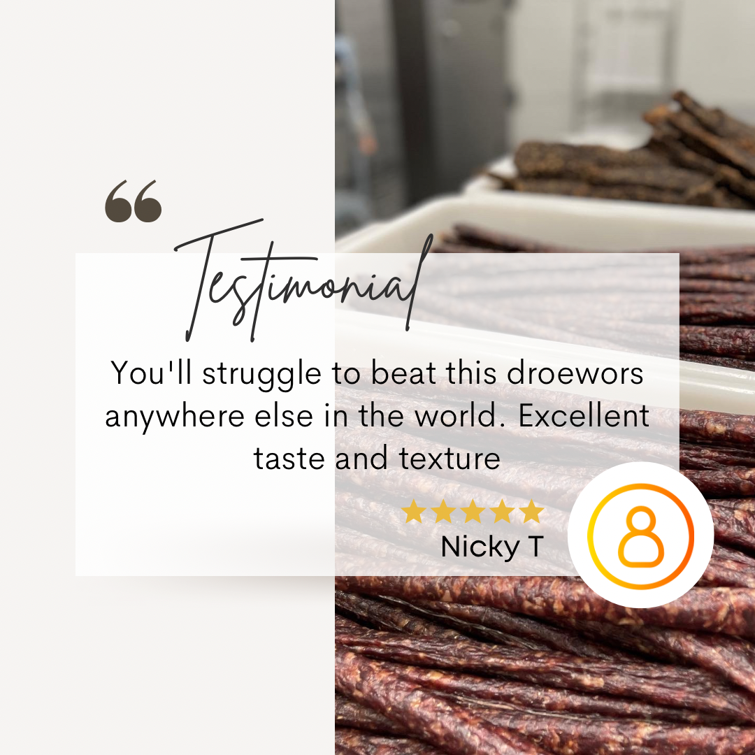 Droëwors is hands down the best in Canada. Excellent product. Above and beyond service.