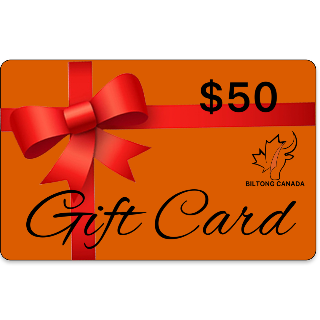 Give the gift of love, buy a Biltong Canada $25, $50, $100, $200 Gift Card for the biltong lover in your life.